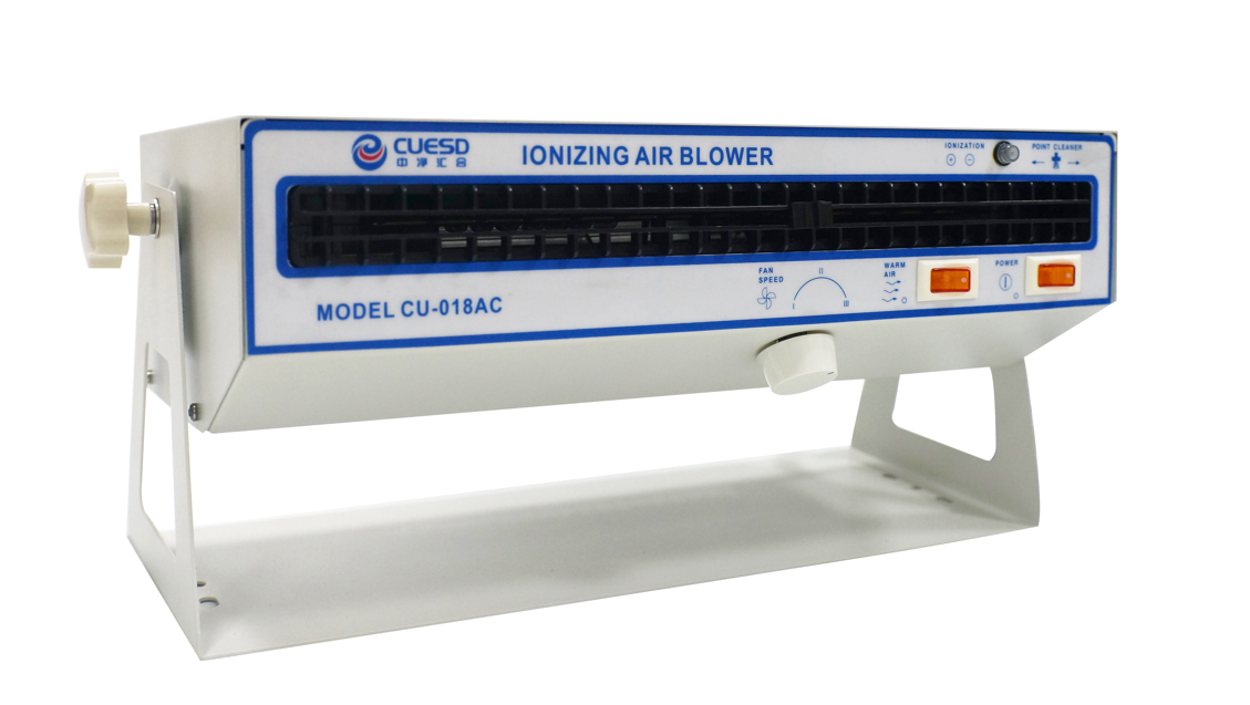 中净汇合CU-018AC离子风机由宽范围横流风机提供风力, 风力大小可由调速器在一个很大的范围内进行调节。电离器件:电离器件在高压发生装置产生的低电流高电压作用下,形成一个稳定的高压电场,电离空气形成离子体,由气流带出到达物体表面,达到中和静电的目的。电离器件上有专用的清洁器,可以清除电离针上的积灰,保持电离器件的正常工作。