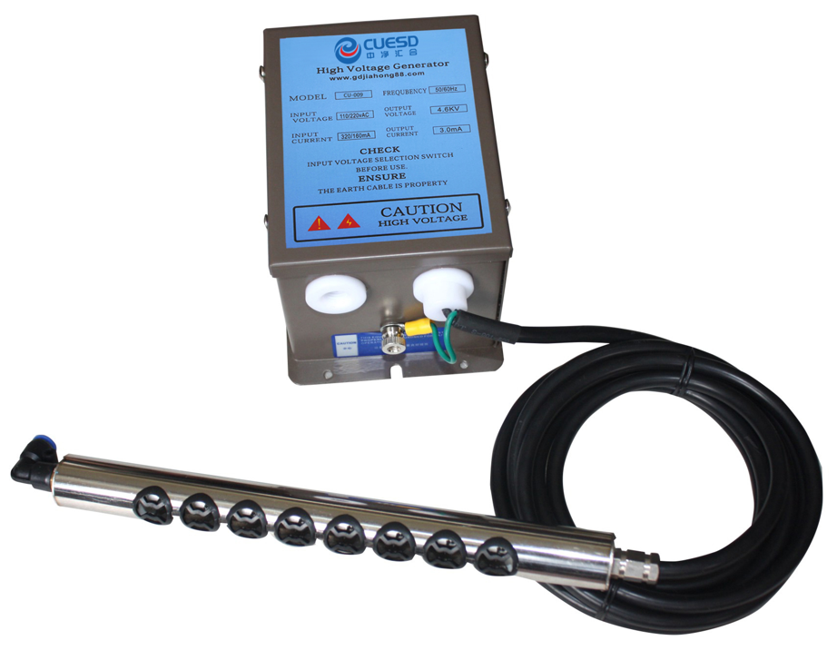 CU-053AC不锈钢离子风棒一款消除物体表面静电的静电消除器;有带风和不带两种不同需求设计,其功能特别适合于薄片料加工,卷料等平面场合消除静电。作用距离为50mm,带风情况下在300mm处也有较好的效果,带风工作时需要配压缩空气(压缩空气一定要过滤干净油和水份)和CU-008AC高压发生器一起使用;长度可以按客户的要求定做。